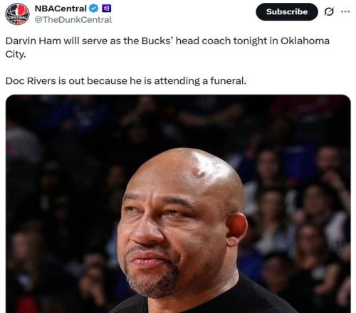 值得一提的是,本場(chǎng)比賽雄鹿隊(duì)不僅是殘陣,甚至連主帥里弗斯也缺席。