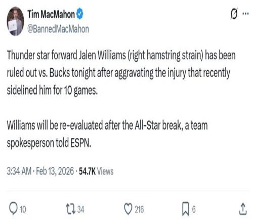 不僅核心亞歷山大持續(xù)缺陣,二當(dāng)家杰倫威廉姆斯又遭遇右腿筋拉傷,此前他因?yàn)檫@一傷病連續(xù)缺席10場(chǎng),突然復(fù)出對(duì)陣湖人后再度受傷,這樣的狀況不僅有可能影響雷霆隊(duì)常規(guī)賽階段競(jìng)爭(zhēng)聯(lián)盟第一寶座,更是給季后賽衛(wèi)冕之旅埋下不小的隱患。