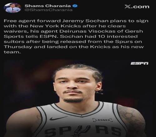 索漢和托馬斯一樣,進(jìn)入買斷市場就立刻有新東家接手,已經(jīng)決定加盟身處國際大城市紐約的尼克斯。