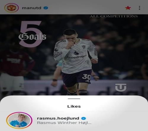霍伊倫點贊曼聯(lián)官方發(fā)布謝什科近期各項賽事打入5球的帖子[心][心]