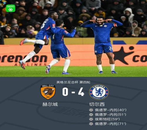 北京時間2月14日英格蘭足總杯 第四輪,赫爾城對陣切爾西。切爾西佩德羅-內(nèi)托帽子戲法,埃斯特旺破門。最終比分赫爾城 0-4 切爾西。