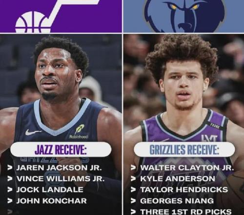 今年交易截止日前,爵士送出克萊頓+李凱爾+亨德里克斯+尼昂+三個(gè)首輪簽,從灰熊挖來3J+孔查爾+蘭代爾+小威廉姆斯。