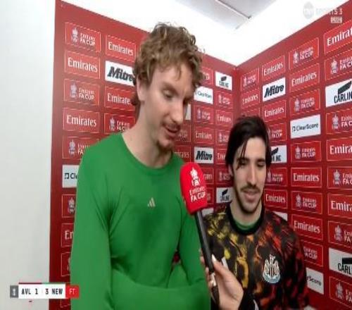 英格蘭足總杯第4輪,紐卡客場(chǎng)3-1戰(zhàn)勝維拉,進(jìn)球的沃爾特馬德和托納利賽后接受了TNT體育的采訪。