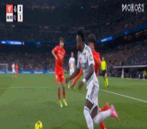 48’維尼修斯再次造點并再次主罰命中,皇馬4比1。