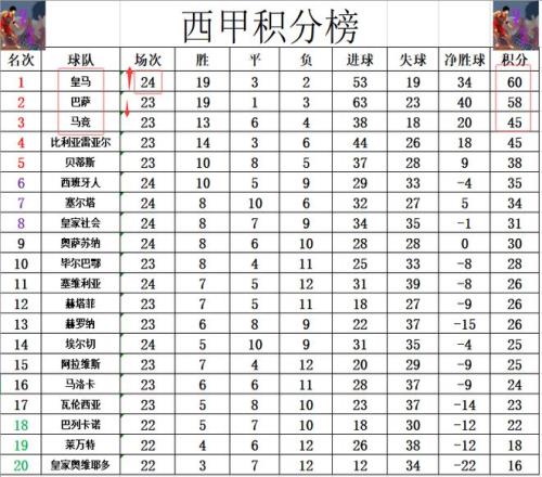 積分榜方面,皇馬先賽大勝后,再次暫時(shí)超過巴薩2分登頂,也是再次把壓力甩給了巴薩。馬競(jìng),比利亞雷亞爾差皇馬15分排在第3,第4。西班牙人下半程戰(zhàn)績(jī)急速下滑,今天又是無力贏球,多賽的情況下,還差貝蒂斯3分。
