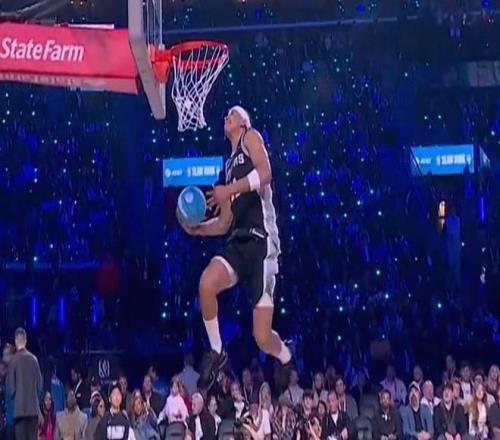第一位登場的為馬刺新秀卡特-布萊恩特,他奉獻一記360度大風(fēng)車扣籃,得到45.6分。