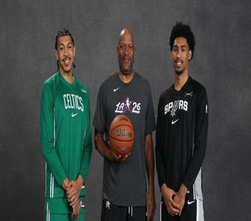 北京時間2月15日,在投籃之星大賽后,羅恩-哈珀帶著兩個兒子小羅恩-哈珀和迪倫-哈珀參加了新聞發(fā)布會。