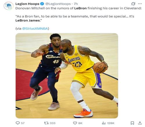 北京時間2月15日,米切爾在NBA官方的播客節(jié)目中透露,他愿意跟勒布朗-詹姆斯成為隊友。他說道:作為一名勒布朗的球迷,如果可以跟他成為隊友那會非常特別。無論未來發(fā)生什么,那就發(fā)生吧,那不取決于我。