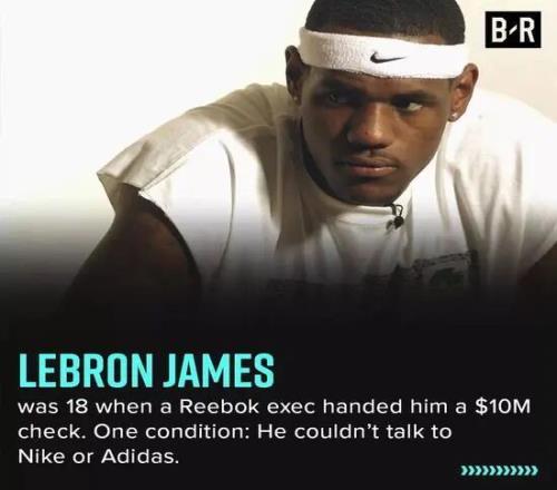 勒布朗·詹姆斯在芝加哥的“籃圈中心”見到了籃球之神喬丹,對方建議他練成“運一下球銜接急停跳投”,他卻在日記里寫下“他也沒給我什么建議”;他本可以當場簽下銳步10年1億美元的合同并拿走1000萬美元預付款支票,卻最終選擇了耐克開出的7年8700萬美元保障合同且居然沒有預付款……