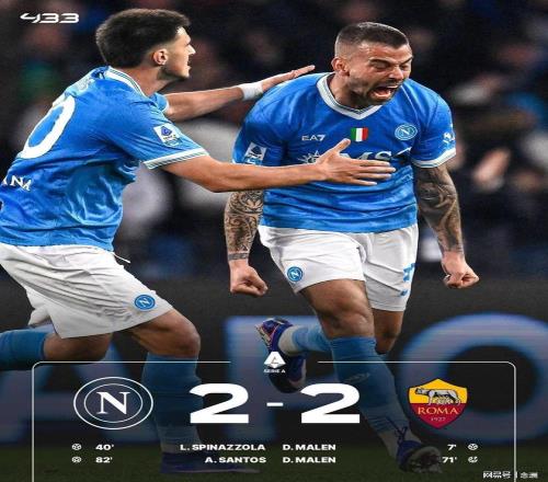 意甲第25輪,那不勒斯主場(chǎng)2-2羅馬,50分第三,羅馬47分第四。馬倫先拔頭籌,斯皮納佐拉世界波,韋斯利造點(diǎn)+傷退,馬倫點(diǎn)射破門(mén)連場(chǎng)雙響,阿利森-桑托斯替補(bǔ)建功。
