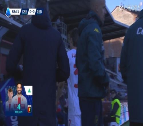 但意甲聯(lián)賽的轉(zhuǎn)播團隊似乎是不認識熱那亞的這位新援——轉(zhuǎn)播換人牌上顯示被換上場的赫然是此前從曼聯(lián)下課的教練阿莫林,轉(zhuǎn)播方甚至還為他P上了熱那亞的球衣圖片。