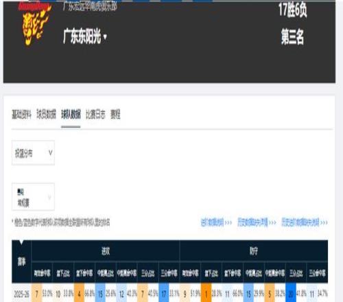 第一階段過(guò)后,廣東男籃的投籃分布,中距離占比僅為25.6%,籃下占比為33.8%,三分占比則高達(dá)40.5%。由此可見(jiàn),外線投射是廣東隊(duì)的主要得分手段,球隊(duì)更強(qiáng)調(diào)外線進(jìn)攻。但問(wèn)題是,他們進(jìn)攻端的三分命中率只有33.1%,該數(shù)據(jù)僅排在聯(lián)盟第17位,整體效率很低。