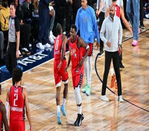 事實證明,改變是有效的。相比以往球員面對全明星賽“休息為主,比賽隨便應(yīng)付”的態(tài)度,有了“爭奪主角”的目標(biāo),美國星辰、美國條紋和世界明星三支隊伍的球員大都上足了發(fā)條,除了堅持“休養(yǎng)生息”的約基奇和帶傷上陣的東契奇等少數(shù)人,其他球員至少是以對待一場常規(guī)賽的態(tài)度,打這場全明星正賽。立志要從一眾前輩手里奪過“聯(lián)盟門面”頭銜的文班亞馬,更是拿出了在少林寺修行的成果,在比賽中攻防一把抓,屢次送給對手大帽。眼見小字輩如此認(rèn)真,詹姆斯、杜蘭特、倫納德等人自然不甘成為陪襯,于是,貼身防守、雙人夾擊、犯規(guī)戰(zhàn)術(shù)、三分絕殺這些在全明星周末極少出現(xiàn)的場面紛至沓來,自然讓觀眾大飽眼福??粗澜缑餍顷犗仁窃庥鼋^殺,第二場又錯失絕平機會,一勝難求后早早出局,年輕氣盛的文班亞馬大為不滿,比賽結(jié)束后臉上沒有任何笑容,氣呼呼地坐在場邊??催@架勢,還以為他不是輸了全明星賽,而是輸了一場季后賽。
