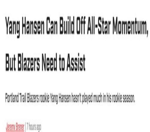 北京時間2月17日,《體育畫報》撰文談到楊瀚森,指出“楊瀚森可以借新秀賽勢頭更進一步,但開拓者也需要給他機會”,具體內(nèi)容如下——
