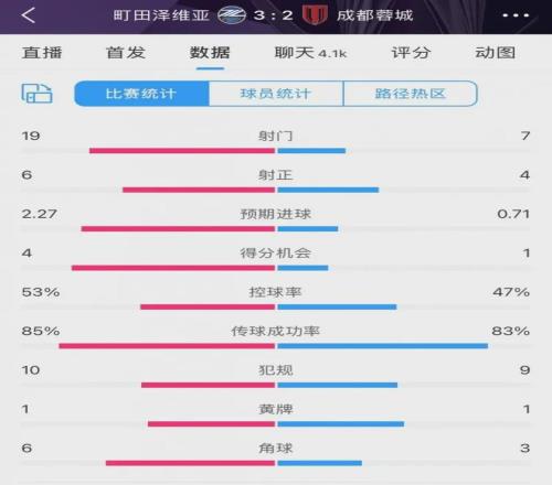 賽后數(shù)據(jù)統(tǒng)計(jì)顯示,蓉城全場(chǎng)射門(mén)7-19,射正4-6,控球率僅47%,得分機(jī)會(huì)1-4。每一項(xiàng)關(guān)鍵數(shù)據(jù)都在被對(duì)手碾壓。要知道,町田此役輪換了包括主力門(mén)將在內(nèi)的9名球員,基本算是一支“二隊(duì)”甚至“三隊(duì)”陣容。