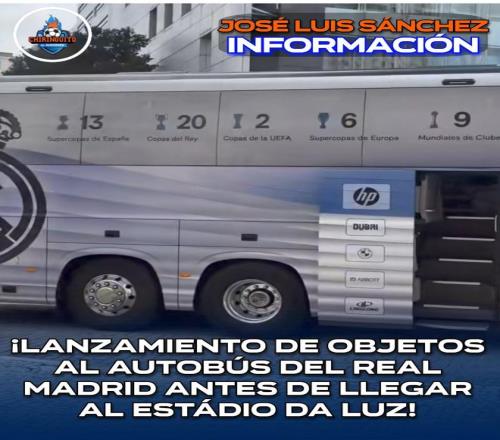 北京時(shí)間2月18日,根據(jù)西班牙六臺(tái)El Chiringuito TV的報(bào)道,皇家馬德里全隊(duì)乘坐的大巴在前往光明球場(chǎng)的路上遭到了本菲卡球迷的攻擊。