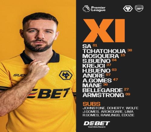 阿森納客戰(zhàn)狼隊:哲凱賴什搭檔薩卡,賴斯、馬杜埃凱出戰(zhàn)