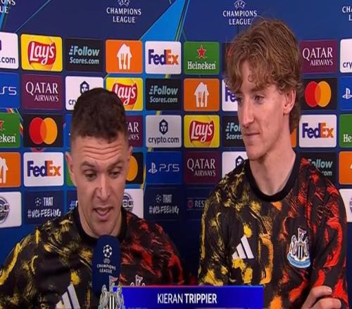 在客場(chǎng)6-1戰(zhàn)勝卡拉巴赫的賽后,紐卡后衛(wèi)特里皮爾和本場(chǎng)比賽上演大四喜的戈登接受了CBS體育的采訪。在采訪中,他們談到了因搶罰點(diǎn)球發(fā)生爭(zhēng)執(zhí)一事。