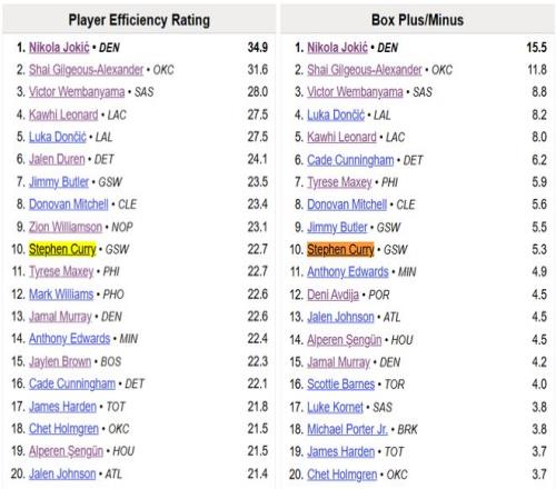 高階數(shù)據(jù)方面,庫里本賽季的PER值22.7、BPM值+5.3,兩項均排在聯(lián)盟第十,也能說明他擁有競爭最佳陣容的可能性——最佳一陣和二陣不太可能,但三陣可以爭一下。