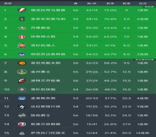 西部最新積分榜