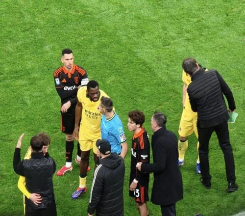 隨后的比賽,1比1的比分并未被改寫,但也不缺少精彩的故事。第80分鐘,AC米蘭主教練阿萊格里因為對法布雷加斯不依不饒,被紅牌罰下。起因是法布雷加斯在場邊拽住了準備搶球的薩勒馬克爾斯。