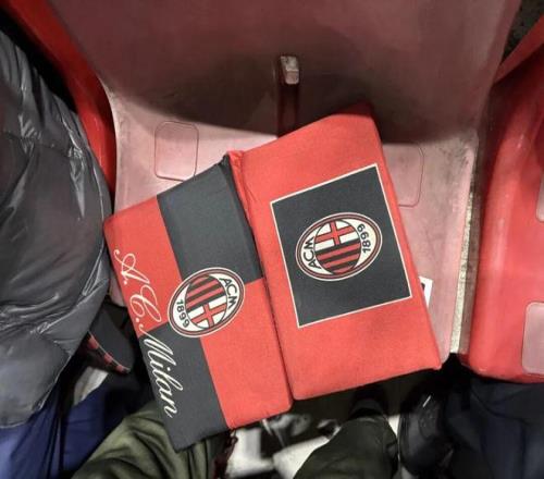 我左右兩邊的球迷體型都偏大,我被夾在中間,與他們一起組成了一個“三明治”。這導致我拍攝照片和視頻都變得十足費勁,但也很溫暖。被兩個壯漢固定在塑料座椅上,屁股需要經(jīng)受比較大的考驗。我旁邊的那位球迷就比較有經(jīng)驗了,專門帶了一個帶有AC米蘭隊徽的座墊。