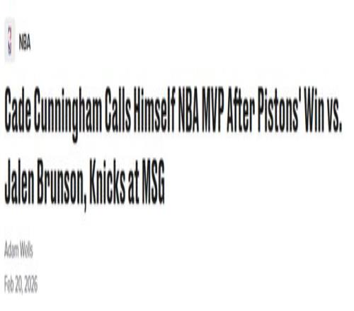 盡管活塞隊史輝煌,卻仍是聯(lián)盟8支從未出過MVP的球隊之一。如果勢頭繼續(xù)保持,坎寧安確實有望成為終結(jié)這一空白的那個人。