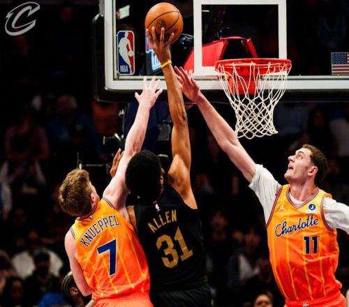 進(jìn)入26年后,黃蜂攻防效率和凈效率值都是聯(lián)盟前五級別,新秀克尼佩爾化身超級狙擊炮,場均18.8分+43%的三分球命中率,輔以場均3.4記三分球,球隊圍繞米勒+三球+克尼佩爾+布里奇斯的核心框架搭建完畢,也開始一路北伐。而本場比賽布里奇斯繼續(xù)被禁賽,騎士這邊莫布里背靠背負(fù)荷管理?;仡櫼幌卤荣悾_場阿倫利用中投和罰球上分,米勒連中三分球,阿倫反擊暴扣。中段三球鮑爾和克尼佩爾內(nèi)外開花,哈登突破喂餅艾倫后,繞阿倫掩護(hù),急停撤步三分再中,此后罰球追上比分。