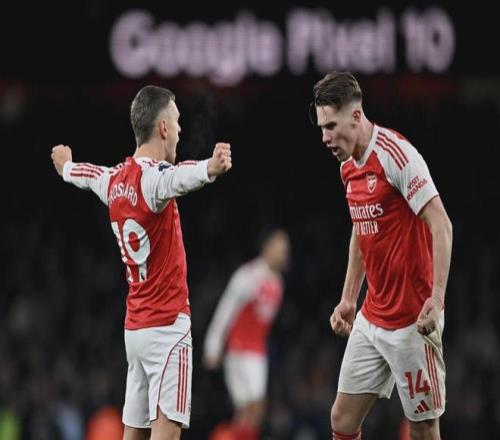 歐冠賽場,阿爾特塔的球隊更加強悍,聯(lián)賽階段8戰(zhàn)全勝鎖定第一。