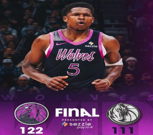 愛(ài)德華茲瘋狂出手30次命中16球,三分13中5,拿到40分6籃板1助攻1搶斷,他幫助森林狼大勝獨(dú)行俠,此役后森林狼勝率61.8%僅比湖人少0.04%的勝率排在西部第六。
