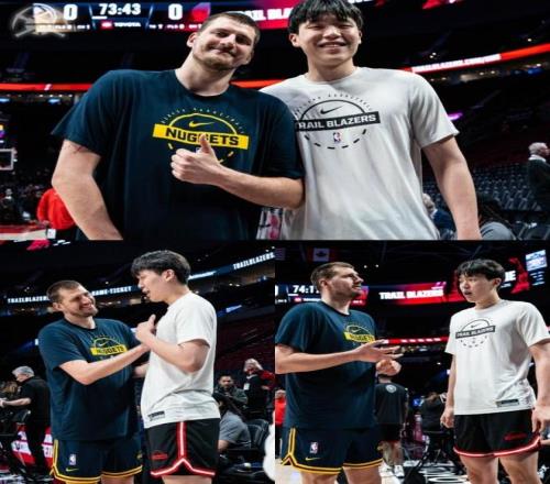 賽前楊瀚森也如愿與偶像約基奇完成互動(dòng),他還專門向其解釋自己并不是真想親他一口,約基奇聽(tīng)到后開(kāi)心一笑,還拍了拍楊瀚森的胸口。