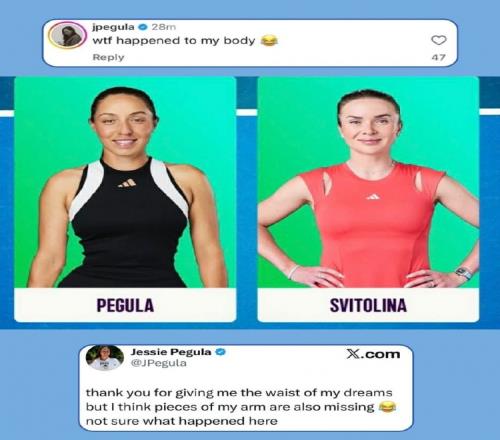 不過據(jù)博主“克母雞”消息,本場比賽賽前出現(xiàn)了一則趣事,WTA在發(fā)布決賽海報(bào)時(shí)不小心把佩古拉衣服的白邊P掉,導(dǎo)致佩古拉的身材看上去十分面條,看上去有些詭異…