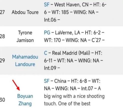 現(xiàn)年19歲的張博源在2024年U17世界杯?場(chǎng)均砍下17.1分4.6籃板,三分命中率40.7%,在對(duì)陣立陶宛的比賽中曾單場(chǎng)轟下28分?。2024年U18亞洲杯?,張博源率隊(duì)獲得季軍,入選賽事最佳陣容,場(chǎng)均得到17.2分?。在選秀網(wǎng)站Rivals的2026屆全美高中生最新排名中,張博源排名全美第25位,美國(guó)選秀網(wǎng)站NBADraft Room的2028屆模擬選秀榜單中,張博源被預(yù)測(cè)會(huì)在首輪第30順位被選中。