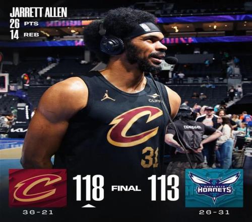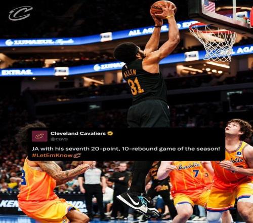 其中第一節(jié)剛開始,賈萊特阿倫就火力全開,他一人包攬了騎士全隊(duì)前11分里的8分,單節(jié)打完已經(jīng)拿到11分3籃板,期間順下吃餅、二次進(jìn)攻甚至還秀了一把中投;