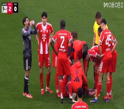 拜仁vs法蘭克福第50分鐘,阿方索·戴維斯帶球被對(duì)手從側(cè)面撞了一下,隨后受傷下場(chǎng),直接返回了更衣室。伊藤洋輝替補(bǔ)登場(chǎng)。