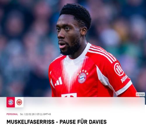 體育播報(bào)02月22日宣 拜仁官方通報(bào)了阿方索·戴維斯的傷情,他在本輪拜仁3-2法蘭克福的比賽中因傷退場(chǎng)。