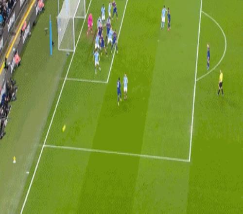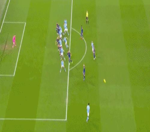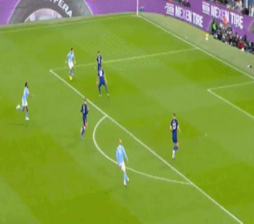 第45分鐘,佳夫和托納利配合失誤,哈蘭德斷球之后強(qiáng)行推進(jìn),禁區(qū)外起腳勁射,擦著立柱稍稍偏出。