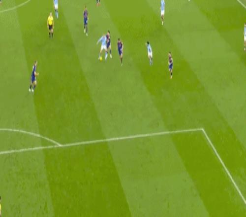 第79分鐘,福登又送出妙傳,艾特-努里左路插上形成單刀,但臨門一腳卻雙腿發(fā)軟踉蹌倒地,波普出擊將球沒收。