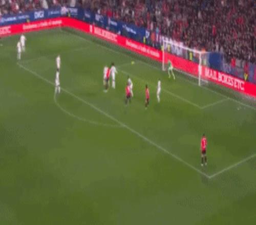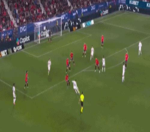 第90分鐘,塞瓦略斯失誤被斷,勞爾-莫羅禁區(qū)前沿送出妙傳,勞爾-加西亞瀟灑過人,小角度冷靜兜射破門,VAR核實不越位,奧薩蘇納再度領先,2-1!