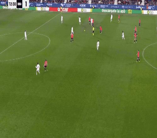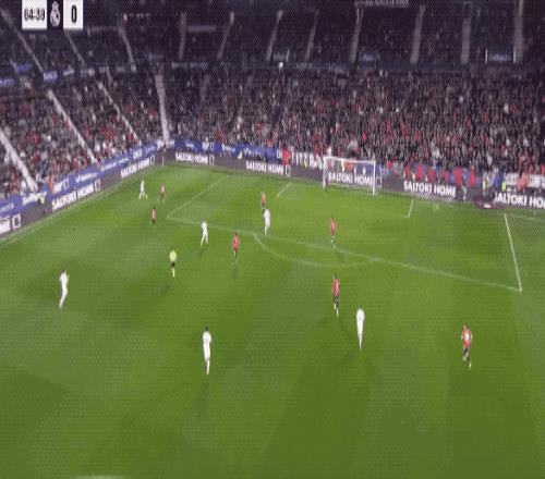 卡瓦哈爾的直塞打穿奧薩蘇納的防線,阿拉巴的射門被埃蘭多擋出底線,兩個(gè)人都相當(dāng)遺憾。
