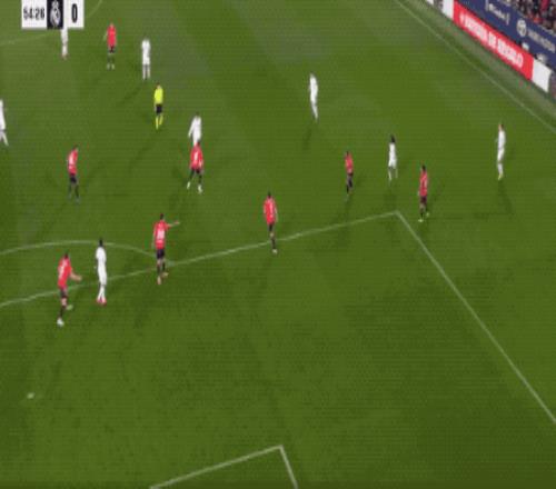 第55分鐘,皇馬大兵壓境,居萊爾本打算和姆巴佩配合,皮球被攔截,居萊爾索性自己射門,皮球擦著橫梁稍稍高出。