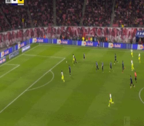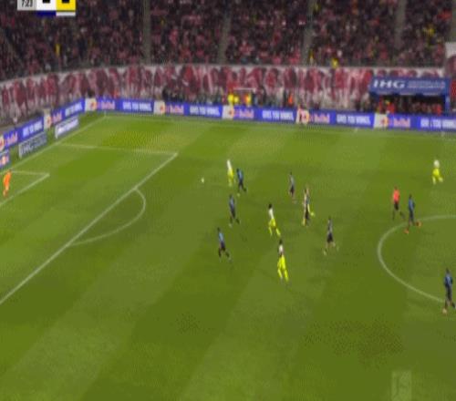 第20分鐘,迪奧曼德晃動(dòng)送助攻,鮑姆加特納破門,萊比錫1-0多特