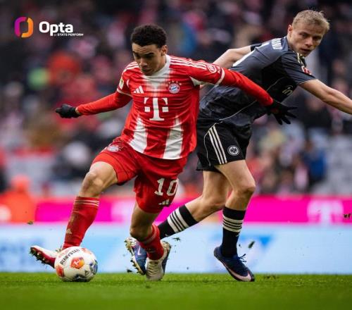 周六結(jié)束的一場德甲第23輪比賽,拜仁主場3-2戰(zhàn)勝法蘭克福,拜仁攻擊手穆西亞拉首發(fā)登場,迎來個(gè)人第100場德甲勝利。