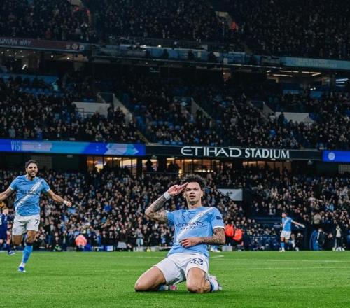 第14分鐘,馬爾穆什反擊中送出橫傳,奧賴?yán)麉^(qū)線上抽射破門,曼城1-0領(lǐng)先!這是20歲小將本賽季第5粒聯(lián)賽進(jìn)球。