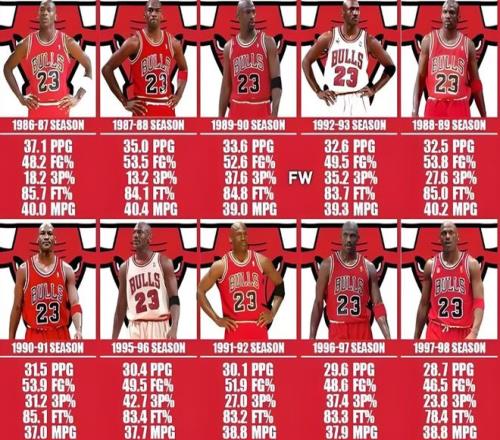 第五,邁克爾·喬丹的10次得分王,得分統(tǒng)治力的終極體現(xiàn)。7連莊+復(fù)出再拿3次,這種中途退役復(fù)出還能統(tǒng)治得分榜的能力,現(xiàn)如今真的無人能比?,F(xiàn)役杜蘭特最多才4次,如今得分高手遍地走,當(dāng)家球星擁有無限開火權(quán)后,場均25+一抓一大把,得分王最后拼的就是小數(shù)點(diǎn),10次得分王,注定后無來者的存在。