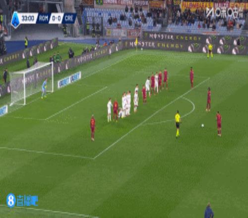 第35分鐘,羅馬左路傳中,門前曼奇尼高高躍起頭球攻門擊中橫梁↓