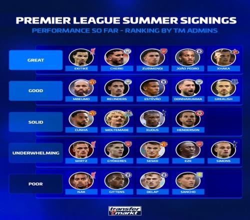 體育播報2月23日宣 德國轉(zhuǎn)會市場對英超去年夏窗的引援進(jìn)行了評級,?;倏?、謝爾基等5筆簽約獲得最高評價,伊薩克則被評為糟糕引援。