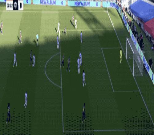 第27分鐘,坎塞洛傳中,萊萬甩頭攻門擊中立柱,客隊(duì)逃過一劫。