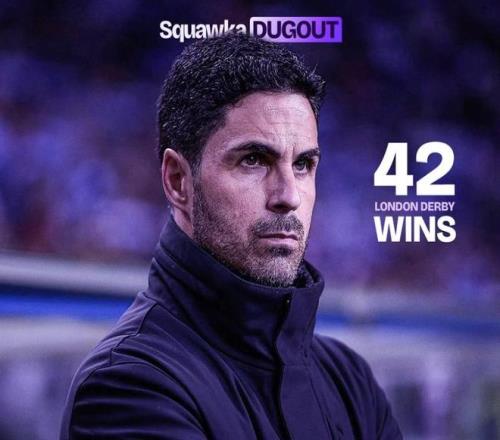 阿爾特塔英超倫敦德比取勝42場,追平穆里尼奧僅次于溫格
