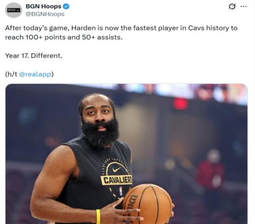 憑借這樣的表現(xiàn),哈登加盟騎士隊(duì)短短6場(chǎng)比賽,已經(jīng)拿到至少100分50助,創(chuàng)造隊(duì)史最快紀(jì)錄,也帶隊(duì)拿下5勝1負(fù)傲人戰(zhàn)績(jī)。